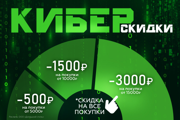 - скидка 3 000 рублей — максимальная выгода при покупке от 15 000 рублей.