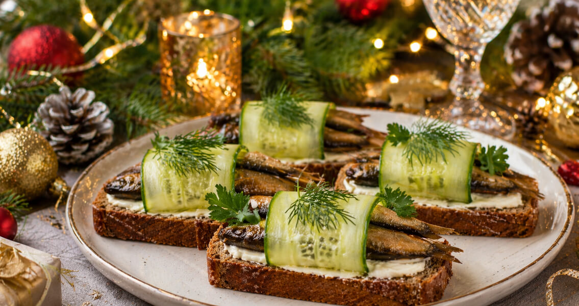 Холодные бутерброды: шпроты и свежесть огурцаХолодные бутерброды — это быстрый, но элегантный вариант, который идеально подходит для фуршетной линии.