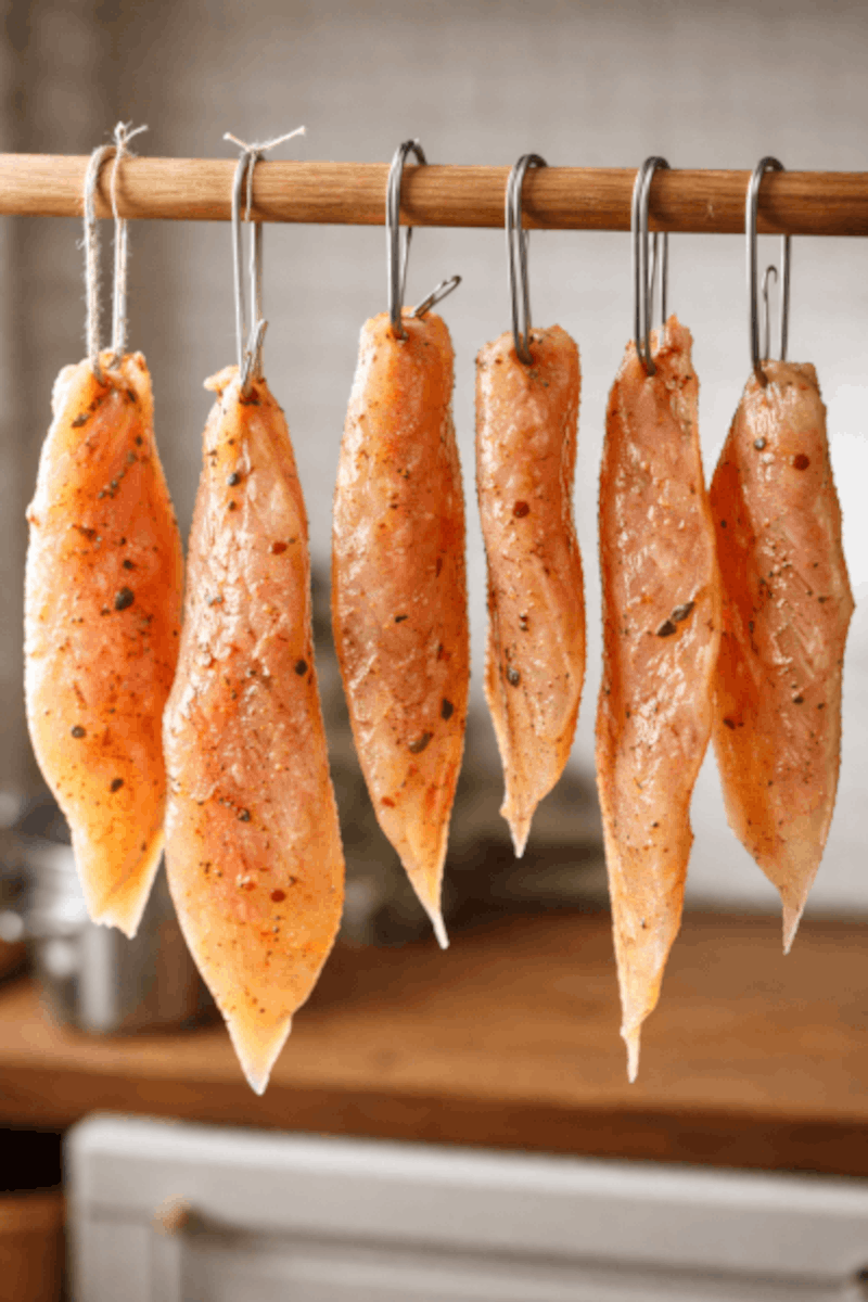 Условия вяления: Важно обеспечить циркуляцию воздуха — это залог правильной текстуры и безопасности продукта.