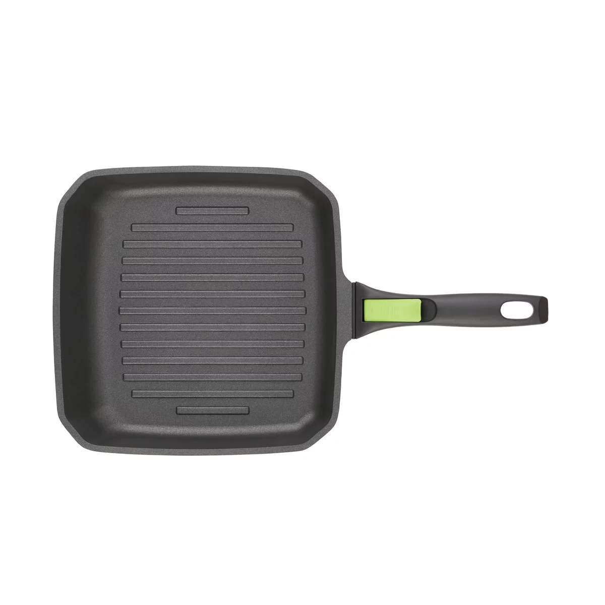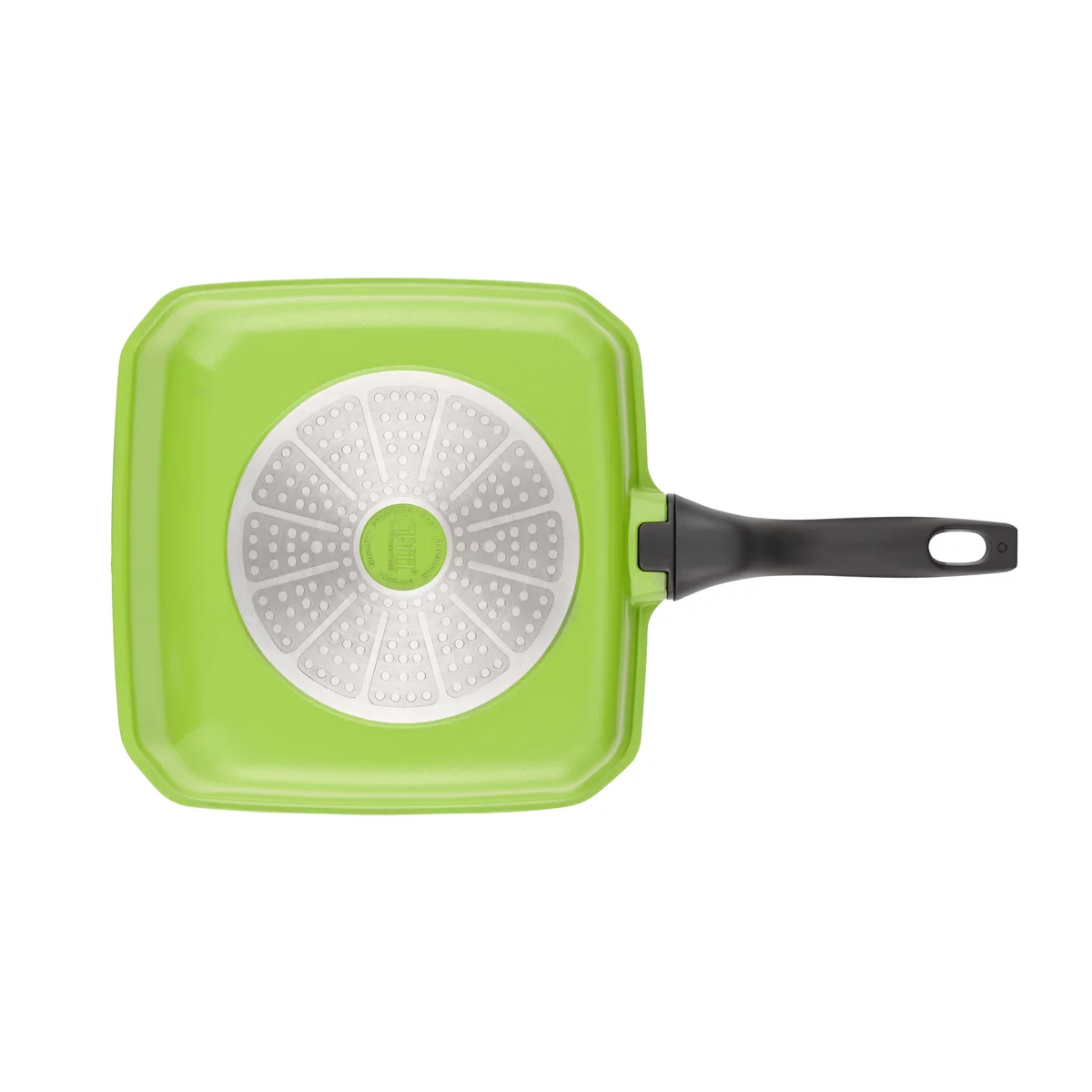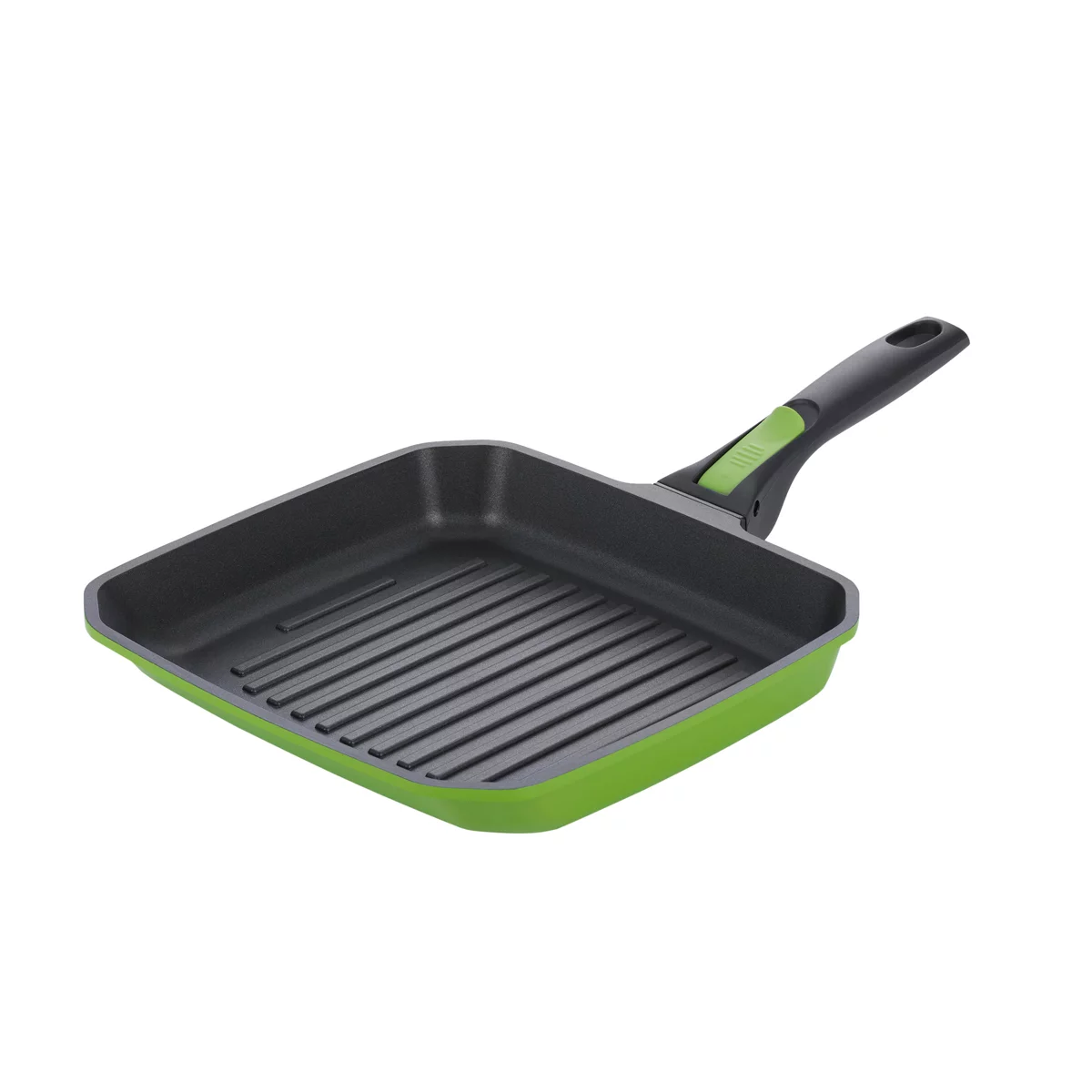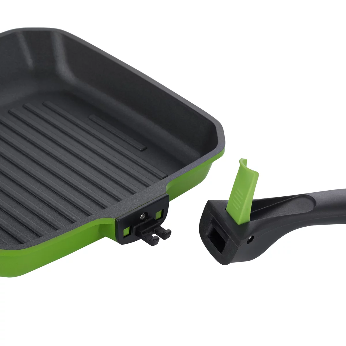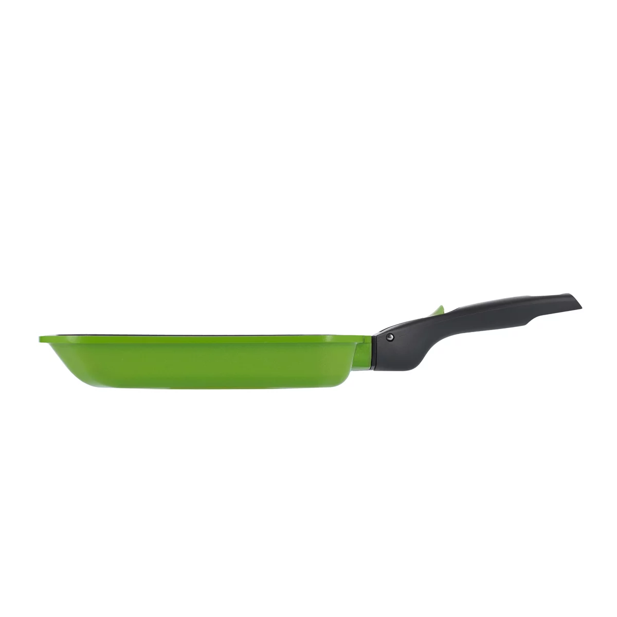 Сковорода-гриль SHAFRAN 26х26х4,6 см со съемной ручкой, индукционное дно. Цвет: внутри черный, снаружи зеленый.