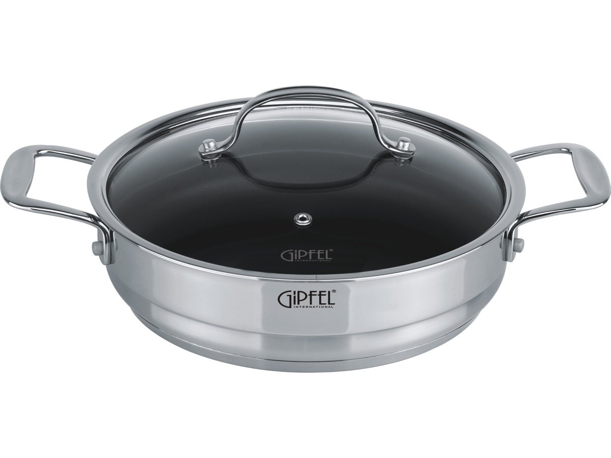 Сотейник Gipfel Gala 1278. Размер 24х6 см. Объем 2,5 л. Сотейник идет в комплекте со стеклянной крышкой. Оснащен индукционным 3-слойным капсульным дном с антипригарным покрытием Whitford Excalibur. Изготовлен из нержавеющей стали 18/10. Толщина стенок 0,7 мм.