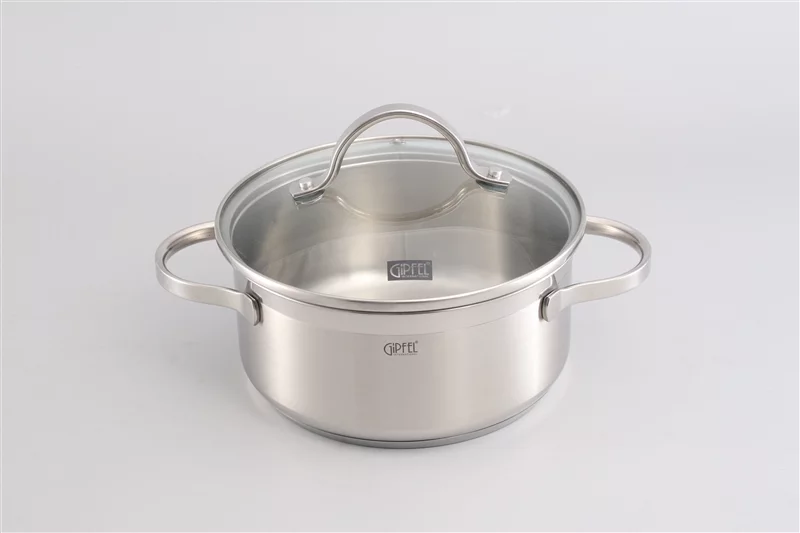 Набор посуды Gipfel Victory 1551 из 8 предметов. В набор посуды входят ковш размером 14х7см и объемом 0,9 л, 3 кастрюли: 16х7,5см/1,3 л, 20х9,5см/2,6 л, 24х11,5см/4,7 л.