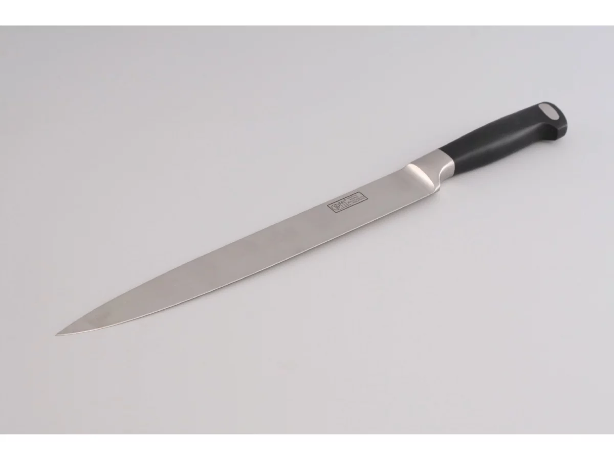 Серия ножей PROFESSIONAL LINE неспроста получила свое название – качество данных ножей делает их выбором профессиональных поваров. Ножи PROFESSIONAL LINE отличаются от других, прежде всего, материалом лезвия, которым является сталь марки 5CR15MOV. Она является отличным сочетанием остроты, гибкости и прочности, то есть именно тем, чем и должен выделяться идеальный кухонный нож. Добавьте к этому удобную бакелитовую рукоятку, которая не выскальзывает при резке, и вы получите настоящие профессиональные ножи, которыми теперь можно укомплектовать и вашу кухню! Длина данного шинковочного ножа составляет 26 см.